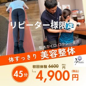 予約リンク:ここから→45分コース選択して姿勢改善コース、睡眠、肩こり、腰の悩みに対応します