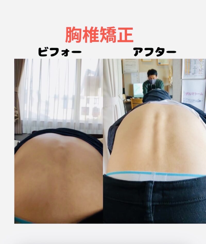 詳しくは胸椎矯正動画をご覧ください。また側湾症に関してはカイロプラクティックコースよりご相談を受けております。